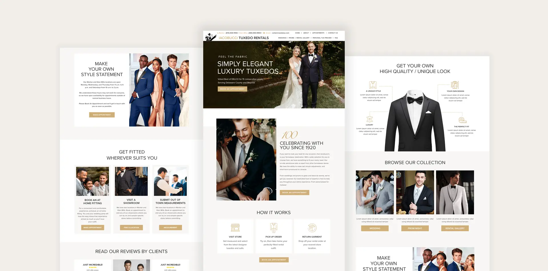 Iacobucci Tuxedo Rentals, a renowned provider of upscale formal wear, approached our digital agency with a vision to revamp their online presence and redefine their brand identity. As a company with a rich history of delivering premium tuxedo rental services, Iacobucci sought to align their digital presence with the sophistication and excellence synonymous with their products. This case study outlines the journey of transforming Iacobucci Tuxedo Rentals into a contemporary and visually appealing brand through a comprehensive website and brand redesign.
